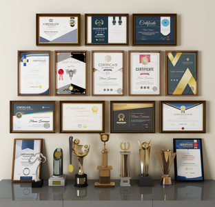 荣誉证书奖杯奖牌奖状荣誉墙