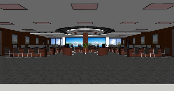 06现代警局视屏监察室监控室指挥中心圆形弧形会议桌椅子)