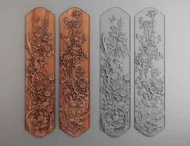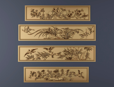3中式古典花鸟,竹,蝴蝶雕花,浮雕
