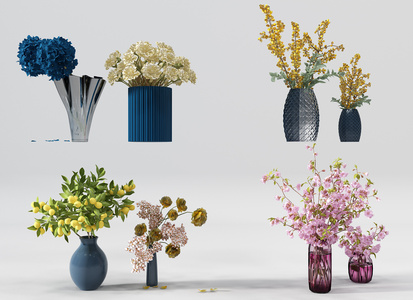 H01-0723现代欧式花艺玻璃花瓶插花桃花、小金桔树