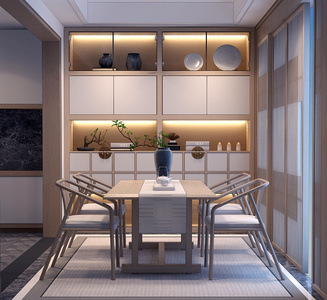 H06-0723新中式茶室茶桌椅装饰柜书柜