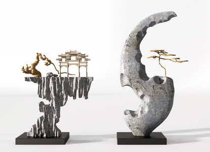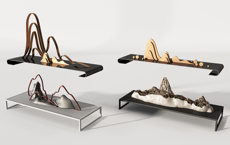 Z32-0708新中式禅意铁艺假山山形山脉摆件造型片石头