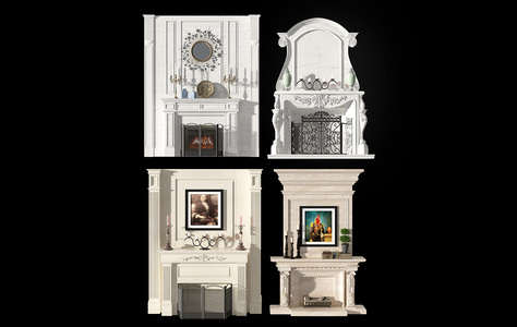Z02-0708古典欧式法式雕花护墙板罗马柱壁炉画框镜框摆钟