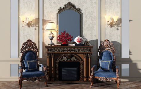 Z01-0708古典欧式法式雕花壁炉画框高靠背沙发