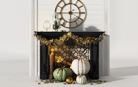 Z04-0708欧式法式壁炉圣诞饰品南瓜铁艺挂钟