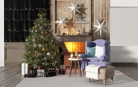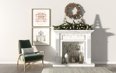 Z05-0708欧式法式壁炉圣诞饰品摆件休闲椅子挂画