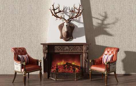 Z08-0708美式壁炉鹿头墙饰皮质软包椅子