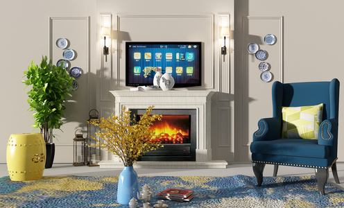 Z02-0706欧式法式电视背景墙壁炉鼓凳青花瓷盘子挂饰挂件