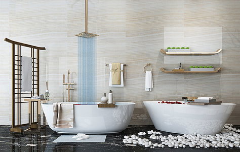 Z15-0213现代陶瓷浴缸浴盆洗漱用品毛巾花瓣鹅卵石