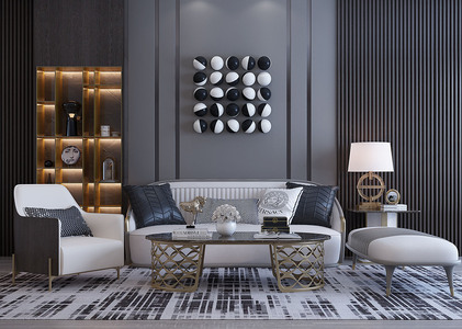 H02-0529现代轻奢沙发茶几墙饰挂件边几台灯书柜