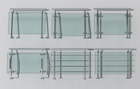 H08-0528现代不锈钢玻璃栏杆扶手组合
