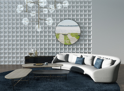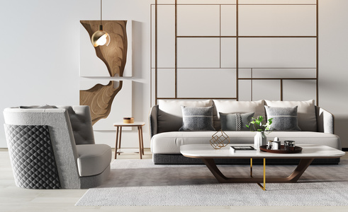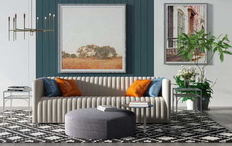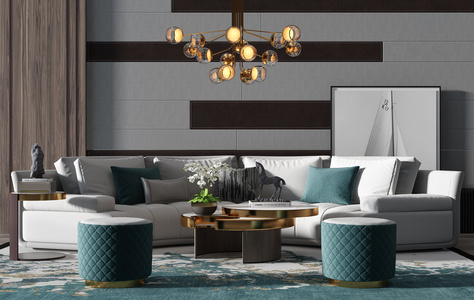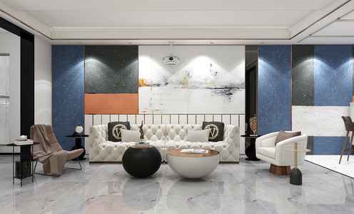 H01-0708现代异形户型半圆沙发茶几玻璃球吊灯圆形挂画
