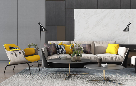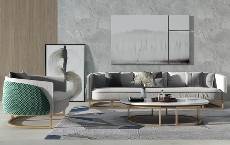 H03-0708现代轻奢简欧式沙发茶几单人沙发