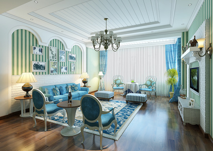 H03-0711现代欧式地中海风格客厅