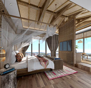 004新中式民宿风格loft卧室床
