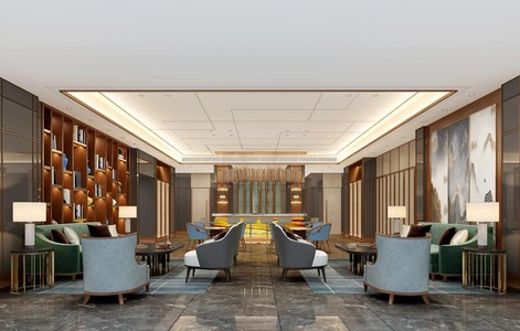 H03-0509新中式现代会所售楼处大厅接待台洽谈区