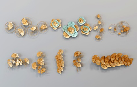 H10-0510新中式银杏叶花瓣金属墙饰挂件组合