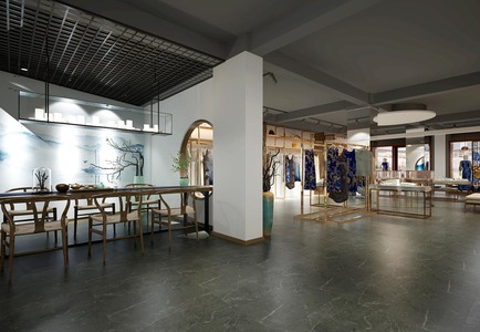 H12-0510新中式服装服饰专卖店店面茶桌椅