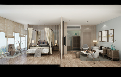 Z24-0212新中式东南亚客房卧室套房客厅架子床竹帘