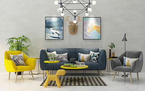 Z06-0213北欧休闲布艺沙发茶几装饰画组合