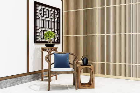 H04-0618新中式椅子花架花窗盆景
