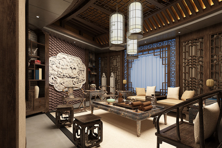 H05-0618新中式装饰柜子书柜