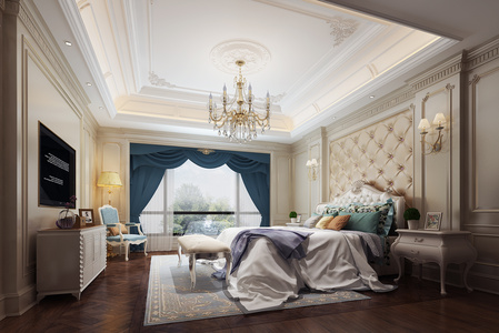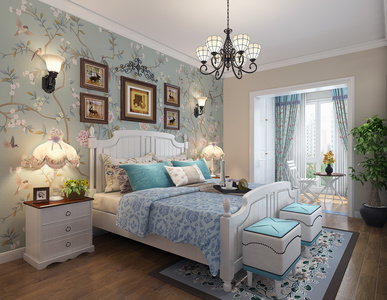 H09-0618美式欧式田园卧室床挂画吊灯