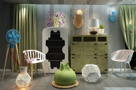Z01-0614现代壁柜边柜休闲椅子鹿角台灯落地灯鹿头挂件休闲椅落地风扇