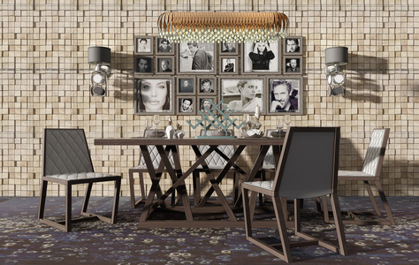 Z12-0614现代北欧简约餐桌椅吊灯组合黑白相框画照片墙壁灯木块墙