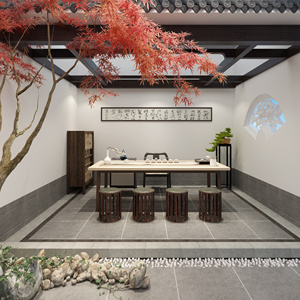 Z12-0605新中式茶室茶桌椅品茶区屋檐庭院