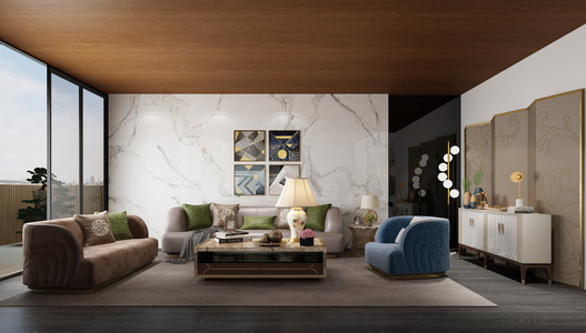 Z09-0605法式别墅客厅沙发茶几吊灯