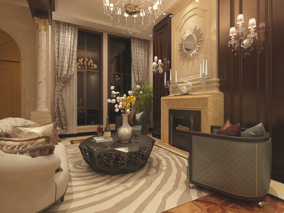 Z01-0604欧式别墅客餐厅壁炉