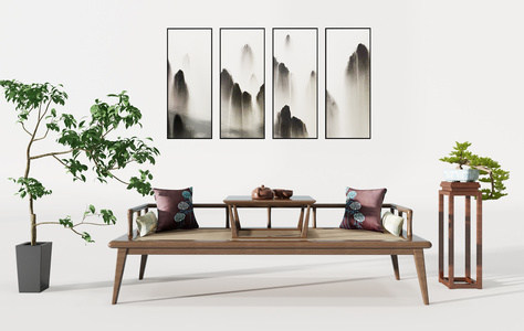 Z27-0530新中式罗汉床植物盆栽花架摆台