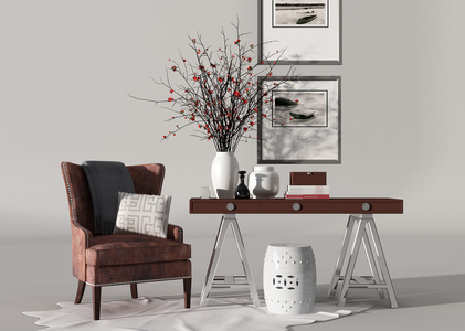 Z23-0528美式欧式新中式漆画玄关柜餐边柜装饰柜椅子立体挂画台灯