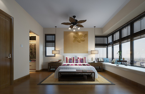 Z01-0525东南亚泰式卧室床百叶帘风扇灯