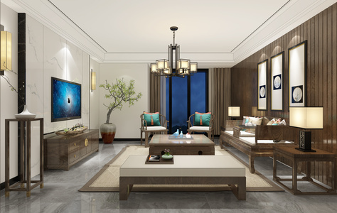 Z04-0519新中式客厅中式实木家具沙发茶几摆台