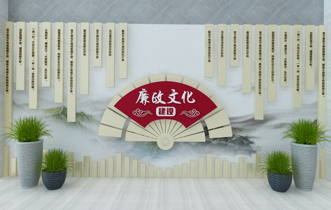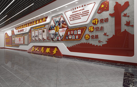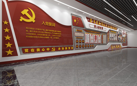 Z16-0517现代党建党组廉政宣传墙展厅展台党徽文化墙连廊