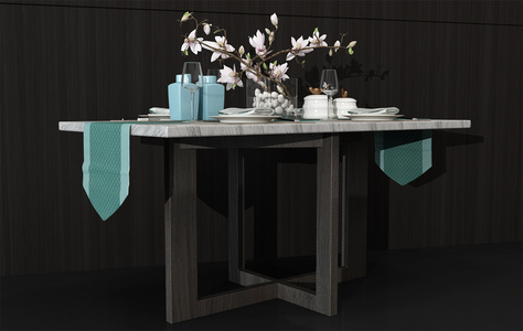 H40-0601新中式大理石圆形餐桌餐具装饰品花饰
