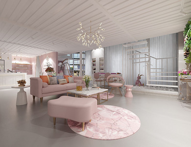 H03-0603现代女士美容养生spa会所休闲等候区
