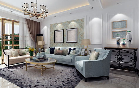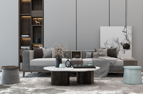 H20-0529新中式现代沙发茶几坐墩摆件组合