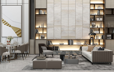 H21-0529现代简欧式轻奢客餐厅沙发茶几餐桌椅书柜组合