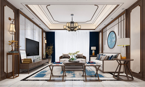 H11-0530新中式客厅沙发茶几电视柜花架摆台盆景竹简