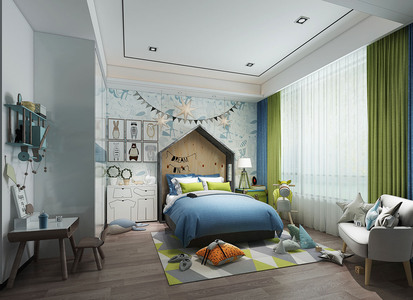 H04-0522地中海现代儿童房床抱枕玩具