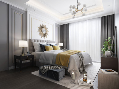 H05-0523简欧式后现代卧室双人床床头柜床尾凳衣柜靠包