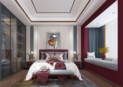 H08-0522简欧式现代卧室双人床床头柜床尾凳飘窗衣柜