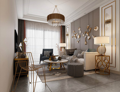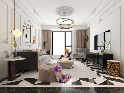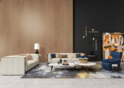 H07-0525现代简欧客厅 多人沙发 茶几 休闲椅 吊灯 台灯 装饰画 角几 饰品摆件杂志架