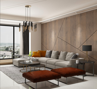 H06-0525 现代客厅 转角沙发 沙发凳 茶几 角几 吊灯