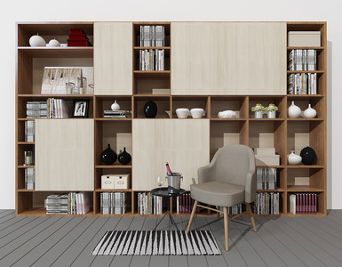 H08-0525现代书柜单椅休闲椅组合