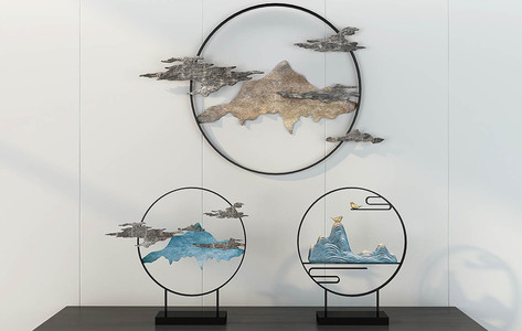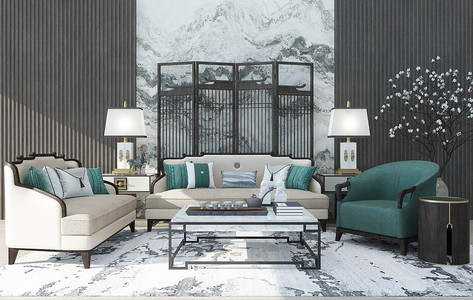 Z19-0510新中式布艺沙发茶几茶具屏风