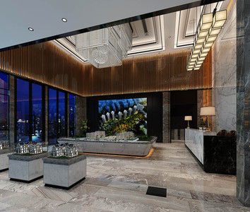 Z24-0510新中式售楼部处大堂沙盘展示区